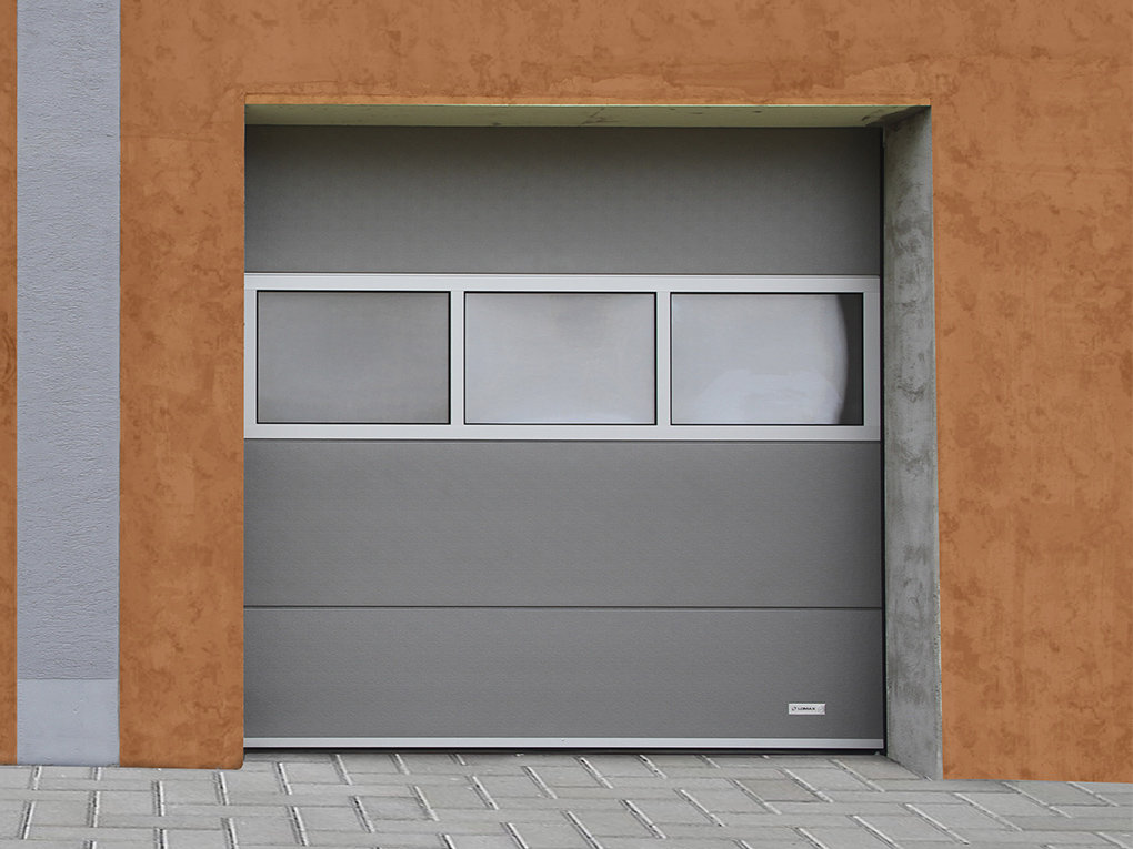 Místo sekce do plochy vrat vsadíme panel z extrudovaného hliníkového profilu.
